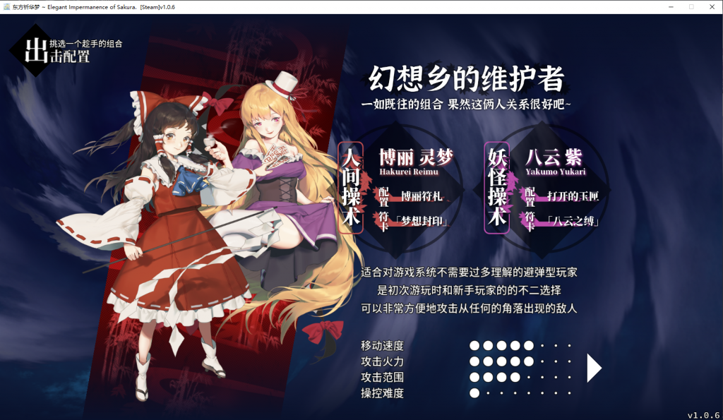 要知道STG的主要玩家并不多,对于制作者来说,或许可以考虑先在音乐、美术方面下足功夫,吸引一些非STG玩家打开弹幕游戏,再通过设置合适的难度跨度让这些玩家适应STG游戏的玩法和思路。