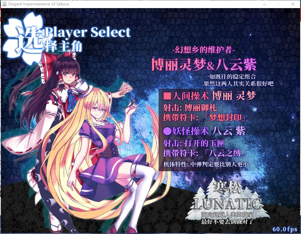 这样看来,或许魔理沙和幽幽子组合更适合这个游戏?结界组的诱导在这种系统下可能有些不好控制。