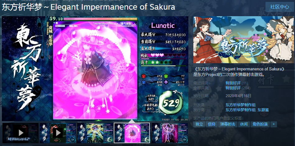 (本次介绍的正是2018年开始制作的东方同人STG东方祈华梦,Steam链接请点击此处)