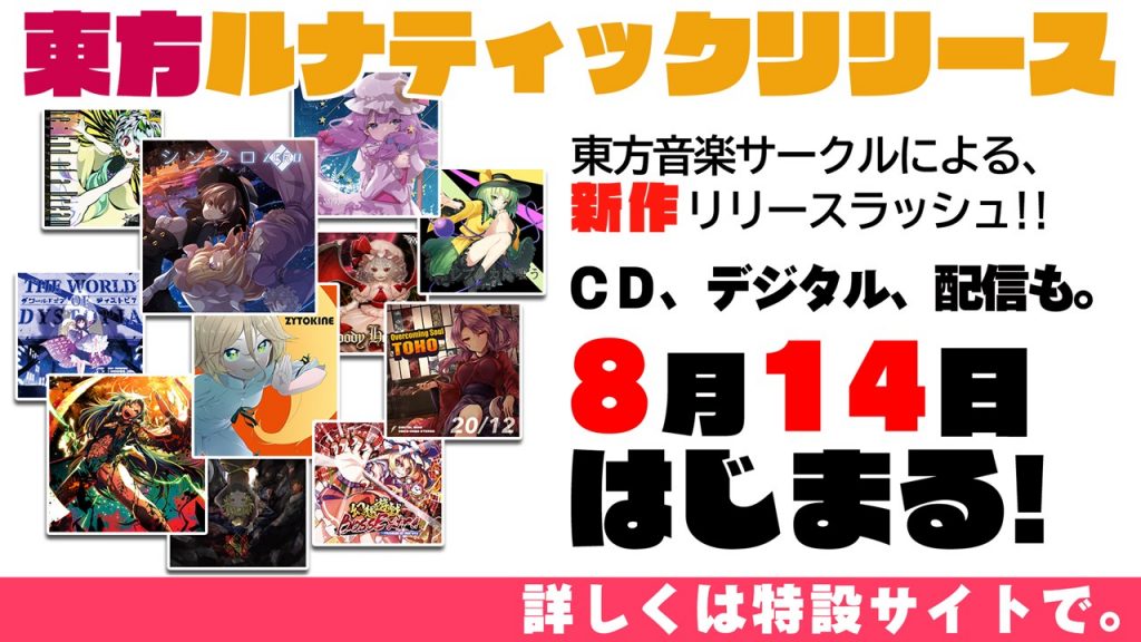 与东方Lunatic解禁一同,东方同人音乐流通也开始了『夏日三周连续发布祭』!